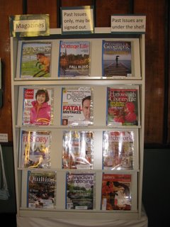 Current issues of the above magazines must be perused in the Library while the back issues may be signed out similar to a fiction or non-fiction book.